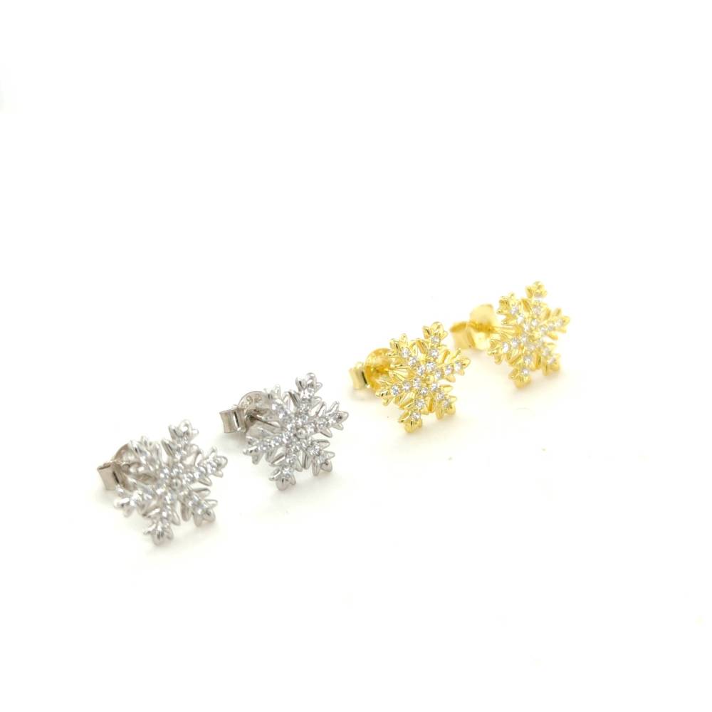 Γυναικεία σκουλαρίκια καρφωτα χιονονιφάδα με ζιργκόν από ασήμι (925°).