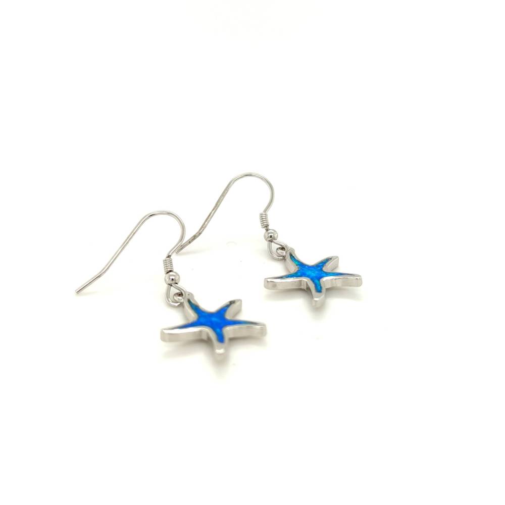 Γυναικεία σκουλαρίκια κρεμαστά από ασήμι (925°) με αστερία και τεχνητό opal.