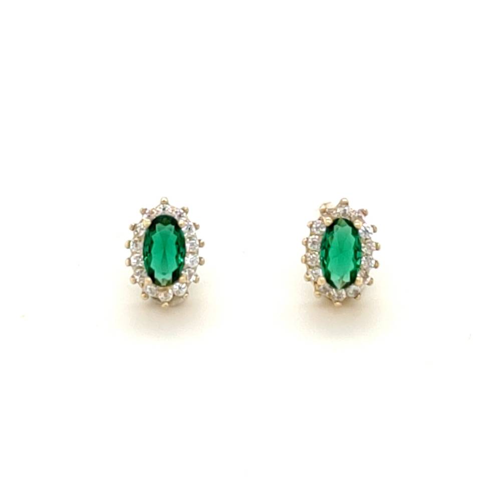 Σκουλαρίκια γυναικείο, χρυσός Κ14 (585°), ροζέτα με πράσινο ζιργκόν