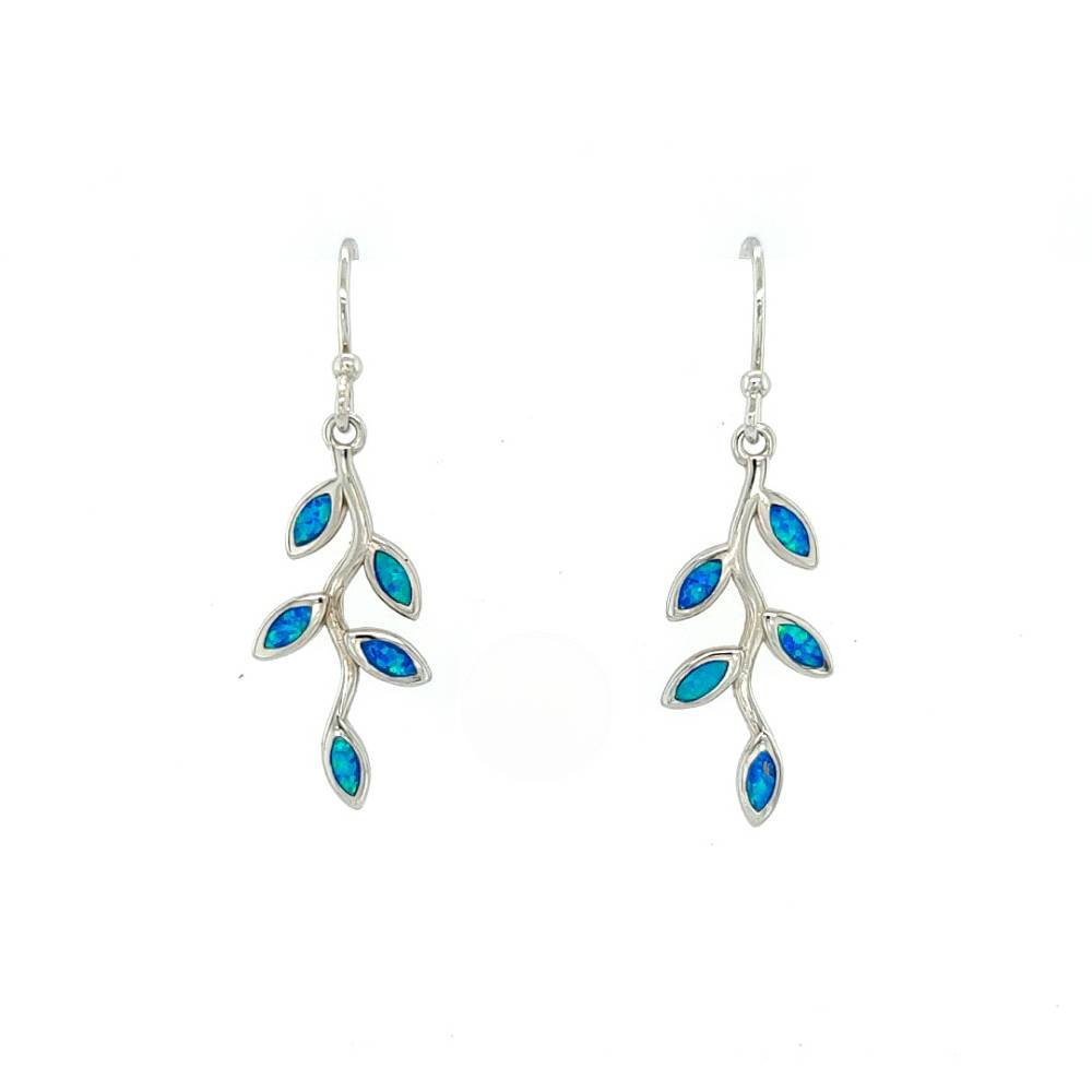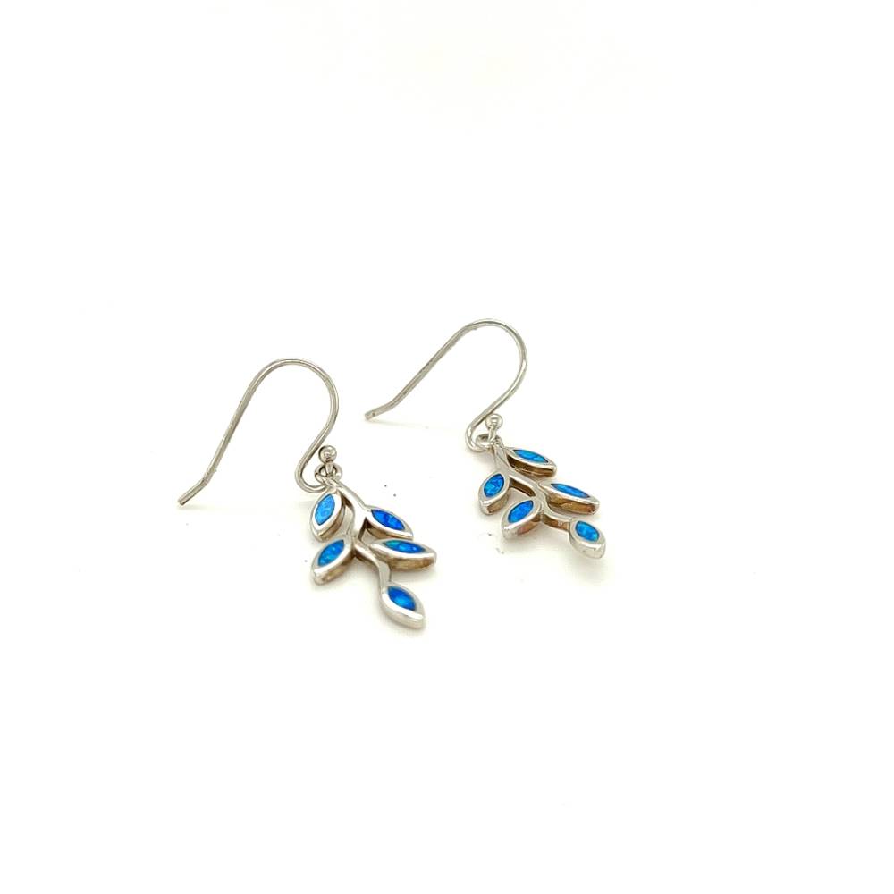 Σκουλαρίκια γυναικείο κρεμαστά, ασήμι (925°), Φύλλο ελιάς με τεχνητό opal
