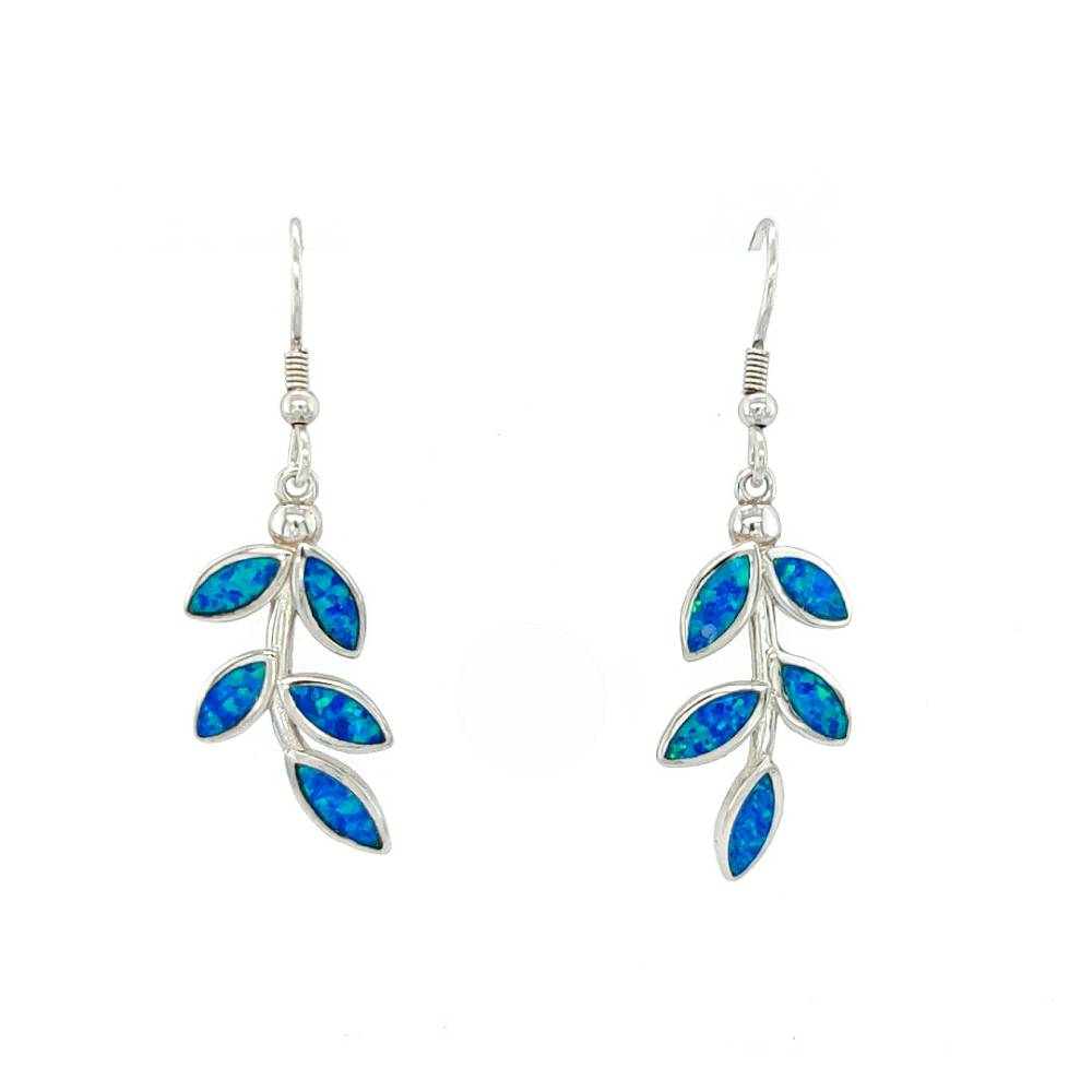 Γυναικεία σκουλαρίκια από ασήμι (925°) με φύλλα ελιάς με τεχνητό opal. Η ελιά για τους αρχαίους Έλληνες ήταν σύμβολο των ολυμπιακών ιδεωδών, της Ειρήνης, της Σοφίας και της Νίκης. Γι’ αυτό και το μοναδικό βραβείο που έπαιρνε ο Ολυμπιονίκης ήταν ένα στεφάνι φτιαγμένο από κλαδί ελιάς, ο «κότινος».