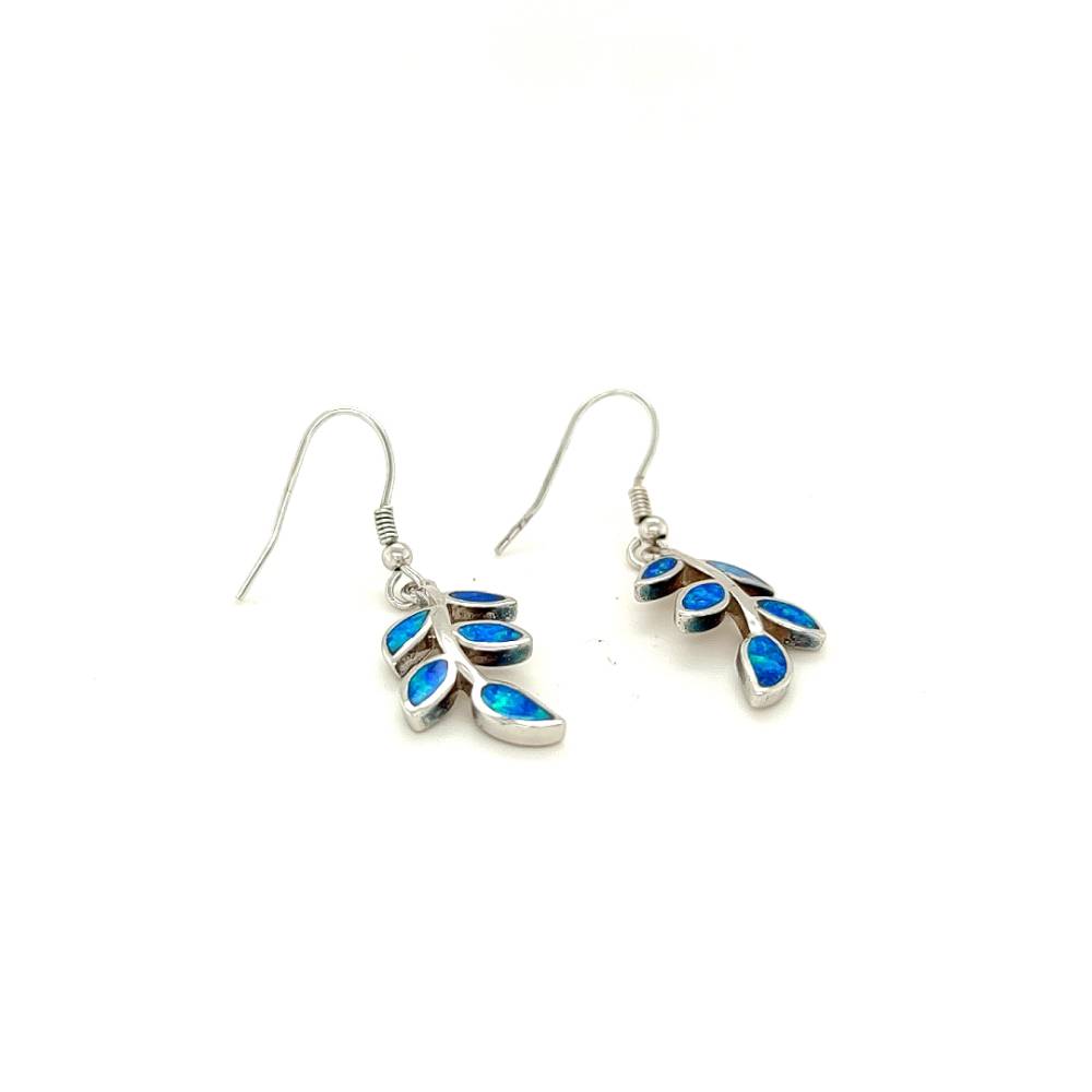 Σκουλαρίκια γυναικείο κρεμαστά, ασήμι (925°), Φύλλο ελιάς με τεχνητό opal