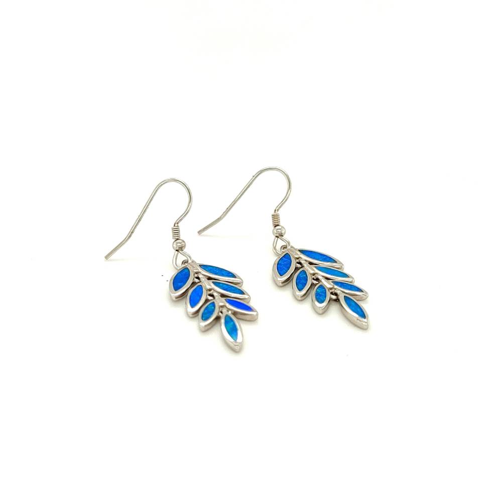 Σκουλαρίκια γυναικείο κρεμαστά, ασήμι (925°), Φύλλο ελιάς με τεχνητό opal