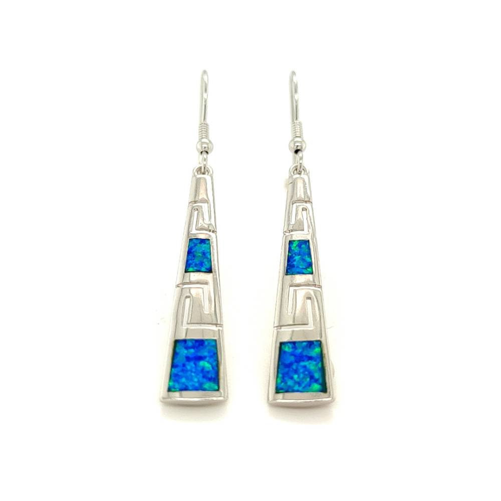 Γυναικεία σκουλαρίκια από ασήμι (925°) με σύμβολο Μαίανδρο με τεχνητό opal. Ο Μαίανδρος είναι το αρχαιότερο ελληνικό σύμβολο, Νίκης και Ενότητας, σύμβολο του Άπειρου και της Αιώνιας Ζωής. Εμπνευσμένος, κατά την άποψη κάποιων ακαδημαϊκών, από τις πολυάριθμες στροφές του ποταμού Μαιάνδρου. Ο Μαίανδρος χρησιμοποιείται σε αγγεία, ναούς, μνημεία, γλυπτά, αντικείμενα, πολεμικά όπλα, πανοπλίες και κοσμήματα.