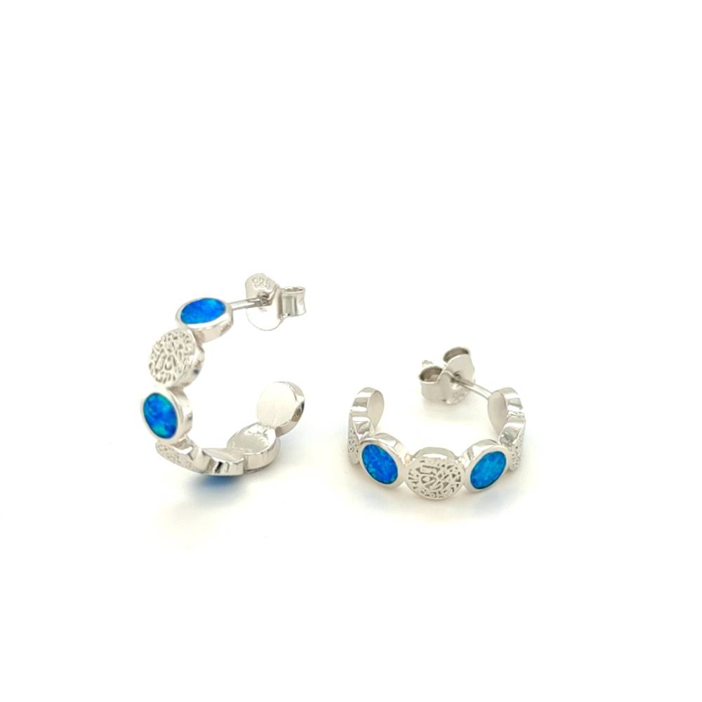 Σκουλαρίκια γυναικείο κρίκοι, ασήμι (925°), Δίσκος της Φαιστού με τεχνητό opal
