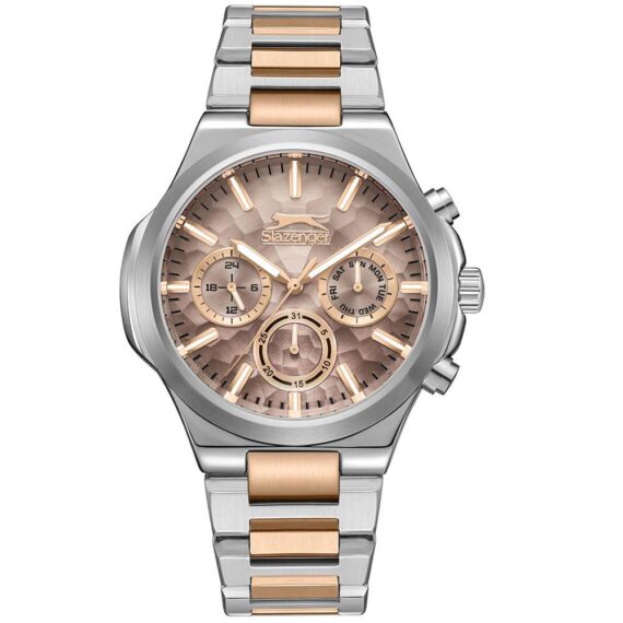 Ανδρικό ρολόι με ασημί μεταλλικό μπρασελέ και ροζ χρυσό καντράν. H Slazenger είναι μία από τις μεγαλύτερες καθιερωμένες αθλητικές μάρκες στον κόσμο με σχεδόν 150 χρόνια παγκόσμιας παρουσίας. Οι συλλογές ρολογιών Slazenger είναι διαχρονικές, σπορ, κομψές και μοντέρνες για χρήση στην καθημερινή ζωή.