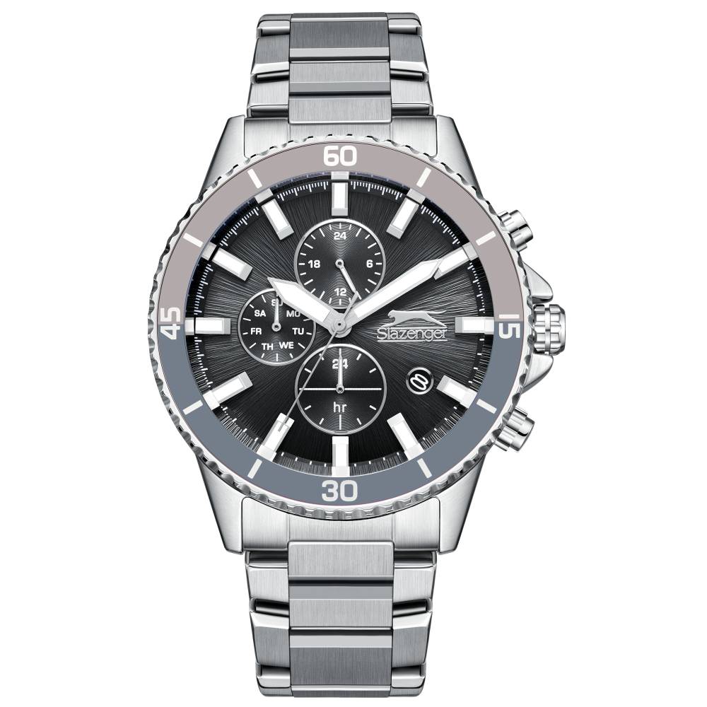 Ανδρικό ρολόι με ασημί μεταλλικό μπρασελέ και σκούρο γκρι καντράν. H Slazenger είναι μία από τις μεγαλύτερες καθιερωμένες αθλητικές μάρκες στον κόσμο με σχεδόν 150 χρόνια παγκόσμιας παρουσίας. Οι συλλογές ρολογιών Slazenger είναι διαχρονικές, σπορ, κομψές και μοντέρνες για χρήση στην καθημερινή ζωή.