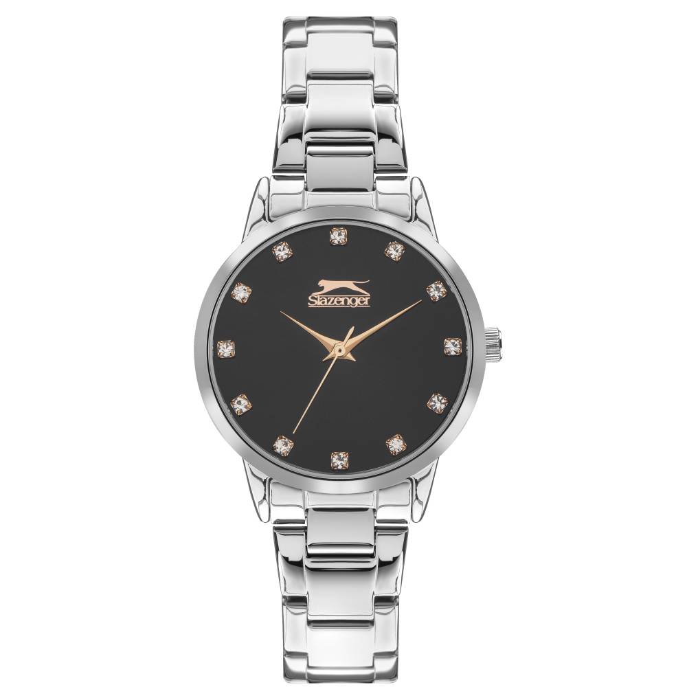 Γυναικείο ρολόι με ασημί μεταλλικό μπρασελέ και μαύρο καντράν. H Slazenger είναι μία από τις μεγαλύτερες καθιερωμένες αθλητικές μάρκες στον κόσμο με σχεδόν 150 χρόνια παγκόσμιας παρουσίας. Οι συλλογές ρολογιών Slazenger είναι διαχρονικές, σπορ, κομψές και μοντέρνες για χρήση στην καθημερινή ζωή.