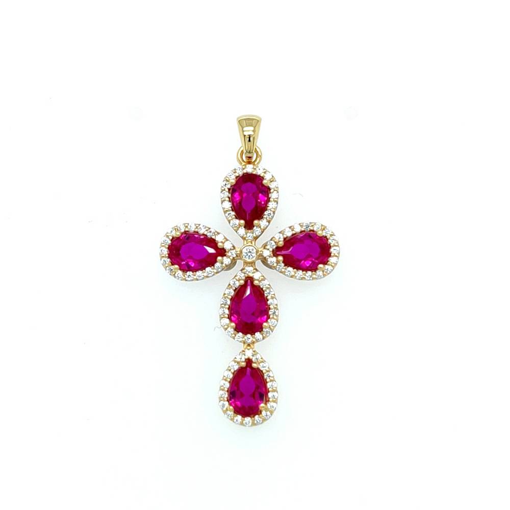 Σταυρός ροζέτα με κόκκινο ζιργκόν, χρυσός K9 (375°)