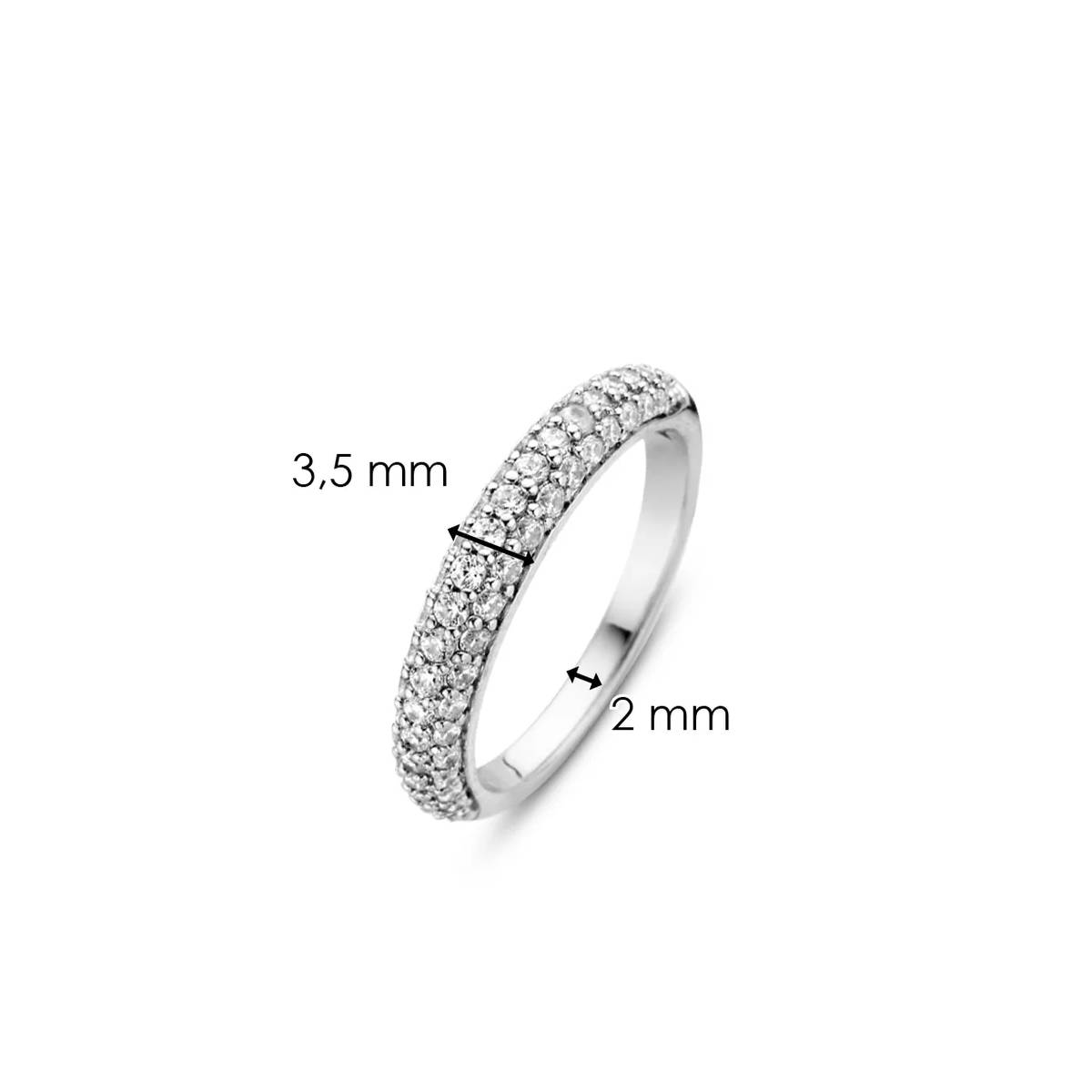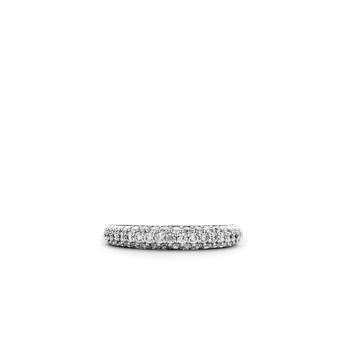 TI SENTO ring pavé-set with zirconias. This ring is made of rhodium plated sterling silver and can be combined superbly with other rings from TI SENTO’s Mix & Match series. The sparkle of the zirconias ensures that this ring is an eye-catcher in its own right.