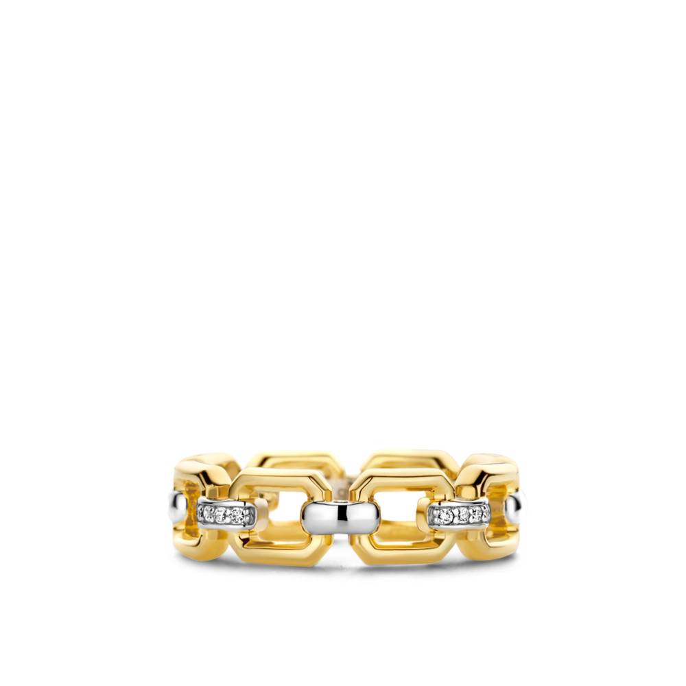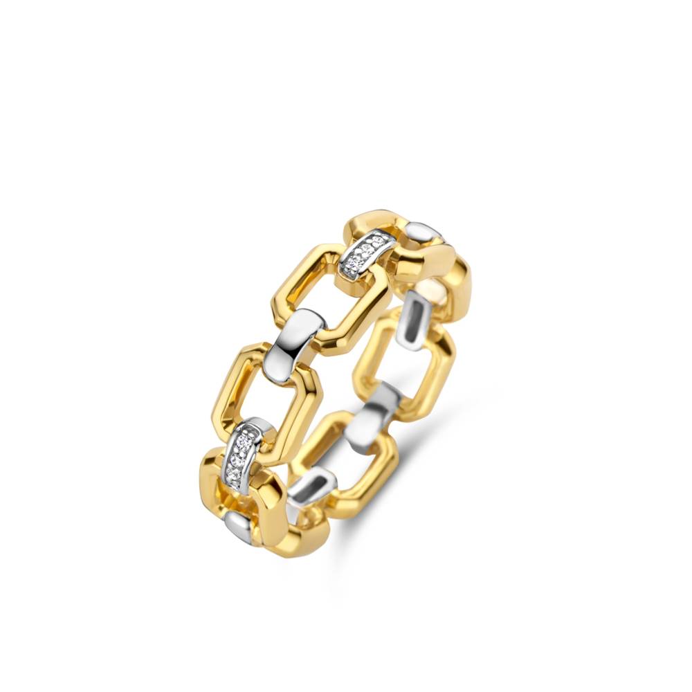 This TI SENTO gold-plated silver ring 12292ZY flaunts iconic rectangular shapes held by tiny opulent pavé links. The ring is crafted from the highest quality 925 sterling silver and plated with yellow gold. This iconic vintage piece is guaranteed to become your next jewellery staple. Add a touch of vintage with a twist to your style! All of our rings are nickel-free and hypoallergenic.