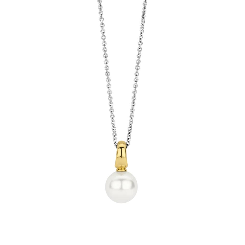 Indulge in the ethereal beauty of this TI SENTO gold-plated Pearl Pendant 6835YP. Crafted from 925 sterling silver and plated in lustrous yellow gold, this pendant features a captivating round pearl with a unique fantasy cut. The pearl’s irregular shape adds a touch of whimsy and individuality to the design. Pearls merge vintage allure with modern sophistication. A symbol of purity and elegance, they have captivated hearts for centuries. This pendant is a modern interpretation of this timeless gem, offering a touch of luxury and sophistication. Let this pendant be the centrepiece of your refined aesthetic. Wear it alone for a minimalist statement or combined with other TI SENTO necklaces for a personalised touch that exudes effortless chic. Crafted with care for sensitive skin, this nickel-free and hypoallergenic ring ensures lasting comfort and quality.