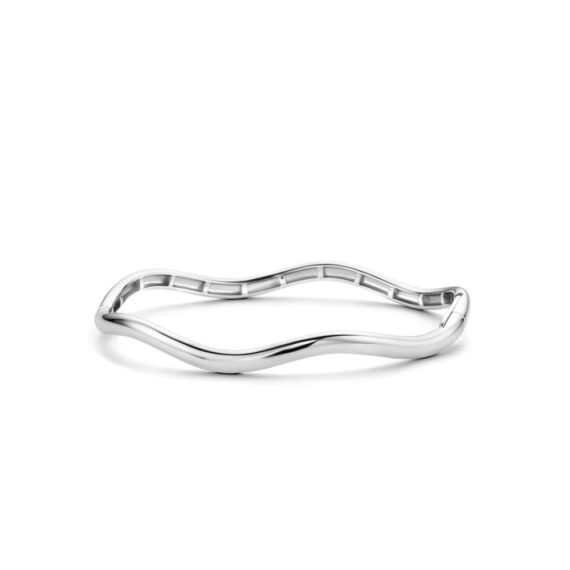 This TI SENTO silver bangle 2990SI features a sinuous ripple shape inspired by the movement of waves. The bracelet is crafted from 925 sterling silver and coated with a layer of platinum to protect it and keep it luminous. This sophisticated and timeless piece is the perfect basic for a glamorous arm party.