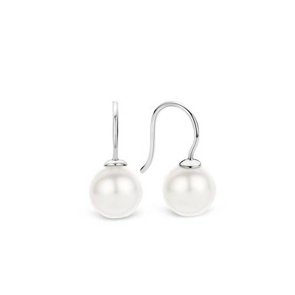 Set with lustrous white pearls, these TI SENTO earrings have a diameter of 10 mm. The perfectly weighted pearls are a delight for the eye and are sure to have heads turning in appreciation of their beauty. The monochromatic styling is both subtle and timelessly elegant, and these earrings will come into their own when worn with darker clothing. The earrings are made of high-quality rhodium plated sterling silver. The rhodium finish produces a glorious shine, as well as providing protection against wear. The earrings can be worn with other beautiful TI SENTO white pearl jewellery or combined with zirconia jewellery.
