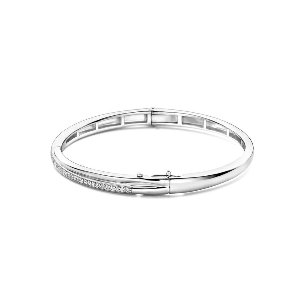 Discover a captivating blend of classic and contemporary design with this TI SENTO Silver Bangle Bracelet 23045ZI. Crafted from 925 sterling silver and plated with platinum for lasting brilliance, this bracelet features two intertwined bands. One band is adorned with a dazzling pave of white cubic zirconia stones, creating a shimmering effect. The other band is smooth and sleek, providing a striking contrast. This bracelet is a testament to the art of fine jewellery, offering a touch of modern sophistication. Its understated elegance and timeless appeal make it a versatile accessory that complements any outfit. Elevate your everyday look with this stunning piece. Wear it alone for a minimalist statement or stack it with other TI SENTO bracelets for a personalised touch. Crafted with care for sensitive skin, this nickel-free and hypoallergenic ring ensures lasting comfort and quality.