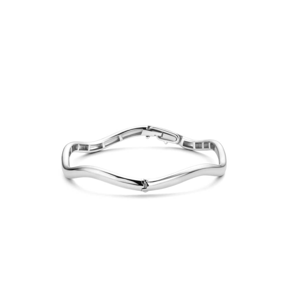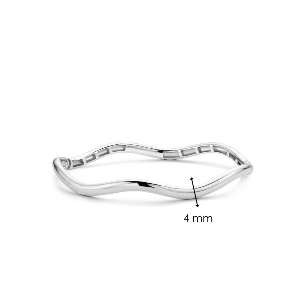 This TI SENTO silver bangle 2990SI features a sinuous ripple shape inspired by the movement of waves. The bracelet is crafted from 925 sterling silver and coated with a layer of platinum to protect it and keep it luminous. This sophisticated and timeless piece is the perfect basic for a glamorous arm party.