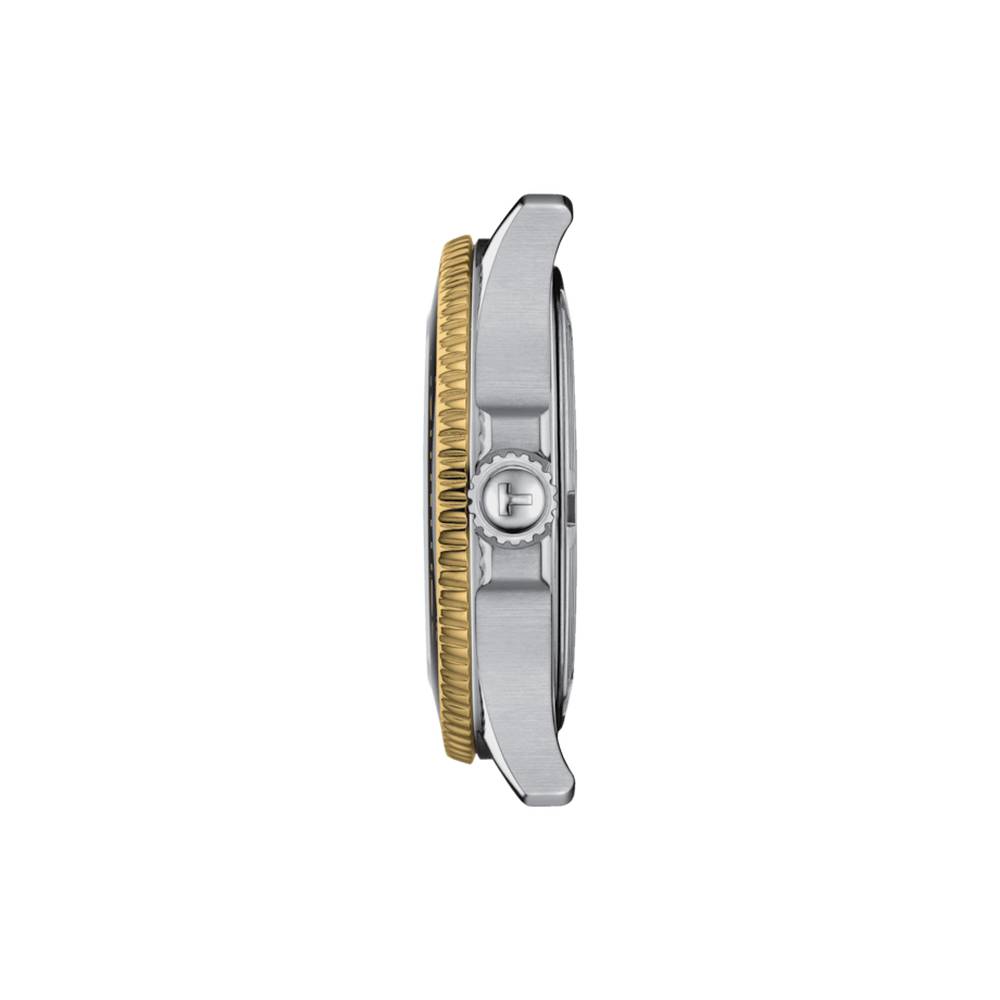 In crystal clear waters, you can see the sun rays breaking through the surface. In your mind, only calm. On your wrist, the Seastar 1000, the door to this underwater world. Chic, assertive and versatile, the new Seastar 36mm watches feature a stainless steel case and bracelet, a uni-directional rotating bezel with a mineral glass insert, a screw-down crown and water resistance up to 30 bar (300m / 1000ft). And if you want, you can quickly switch the bracelet for an orange, white, light-blue or black silicone strap. Change your outlook and step into another world with this watch featuring a black dial, contrasting bezel and stainless steel bracelet.
