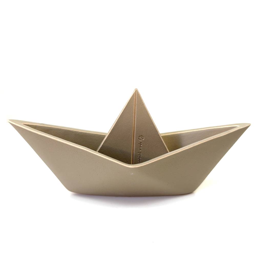 A handmade ceramic boat in beige color from the ceramic workshop TREIS GRAMMES. Colors may vary slightly from reality.