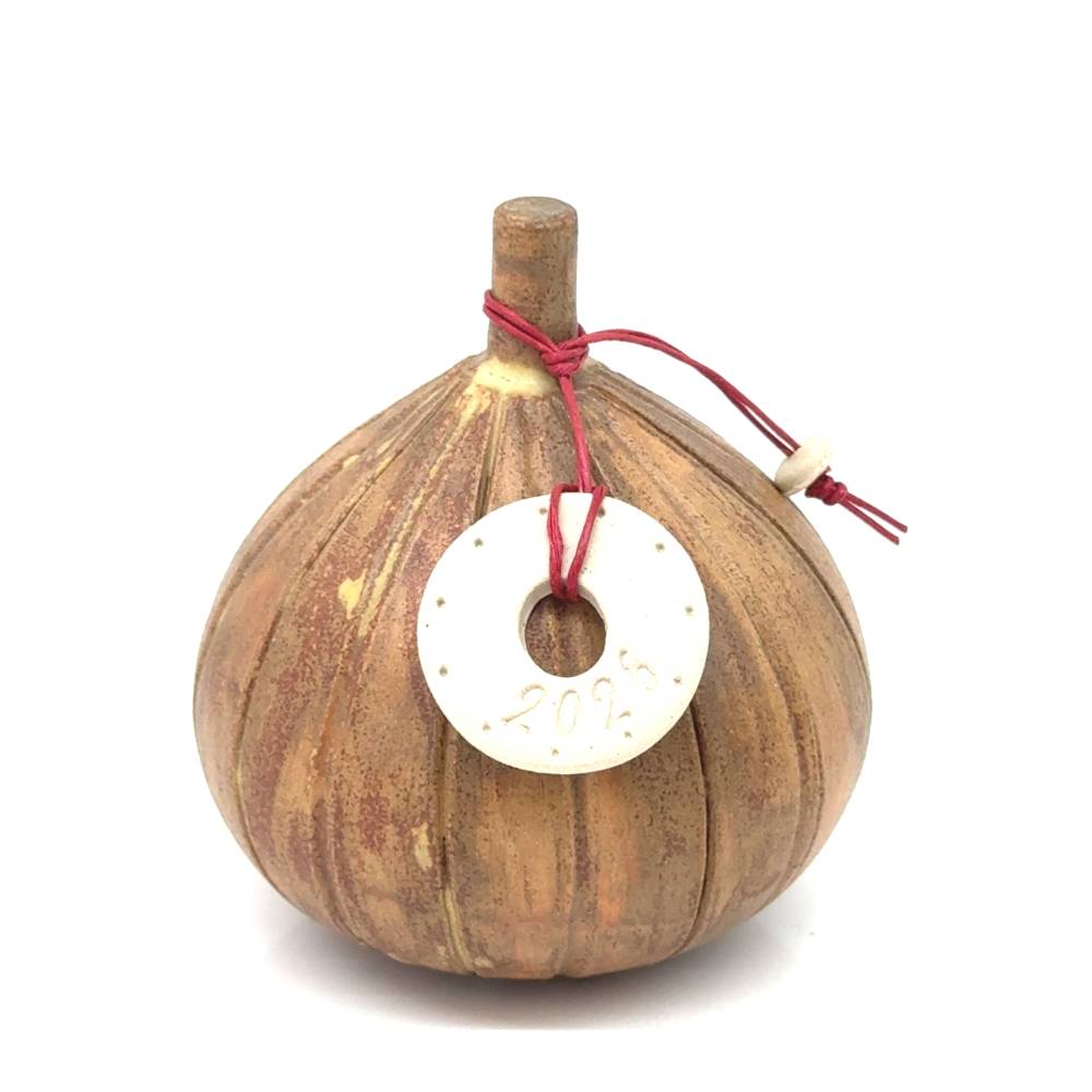 TREIS GRAMMES Christmas ceramic fig 2026, orange and beige, 9×7,5cm