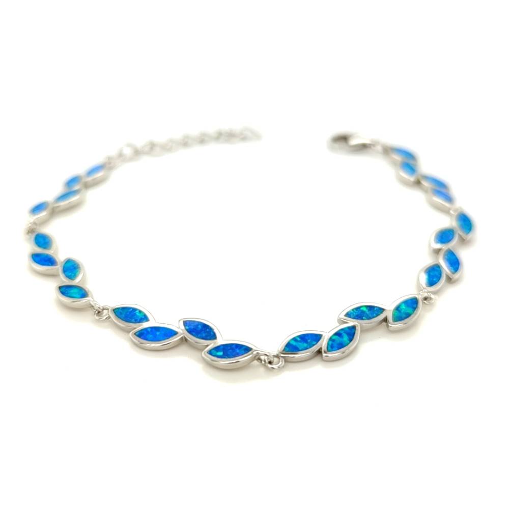 Βραχιόλι, ασήμι (925°), Φύλλο ελιάς με τεχνητό opal