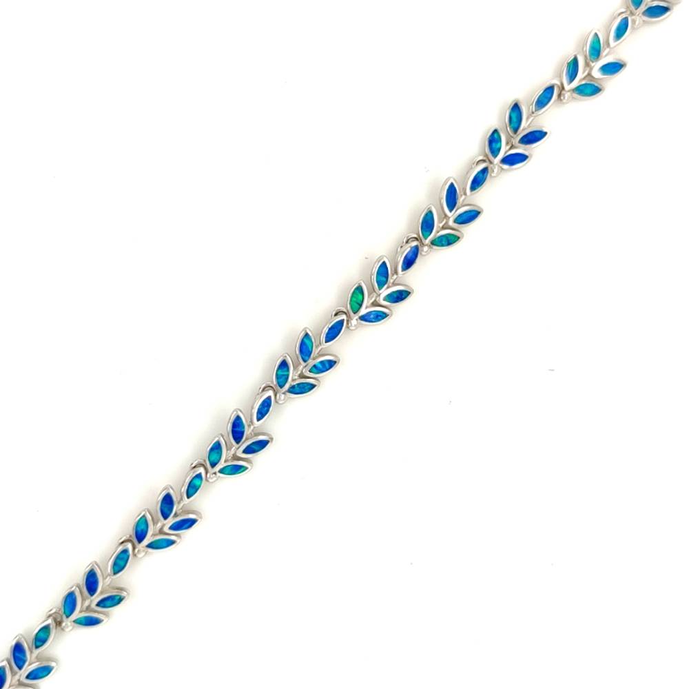 Βραχιόλι, ασήμι (925°), Φύλλο ελιάς με τεχνητό opal