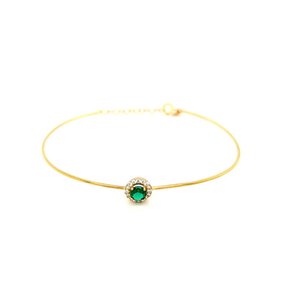 Βραχιόλι γυναικείο, χρυσός Κ14 (585°) ροζέτα με πράσινο ζιργκόν