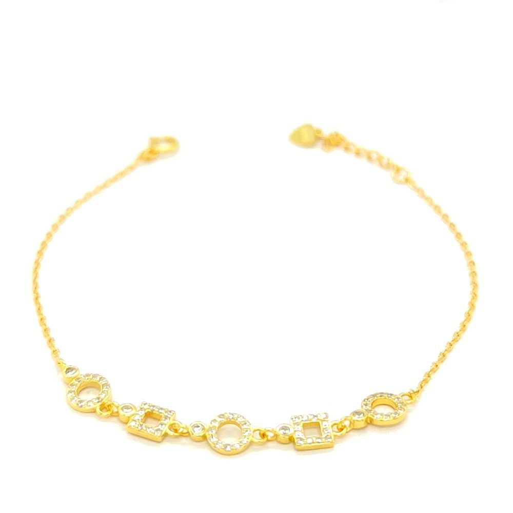 Γυναικείο βραχιόλι φτιαγμένο από ασήμι (925°)-επίχρυσο , το οποίο κοσμείται από γεωμετρικά σχήματα (κύκλους και τετράγωνα ) με ζιργκόν .