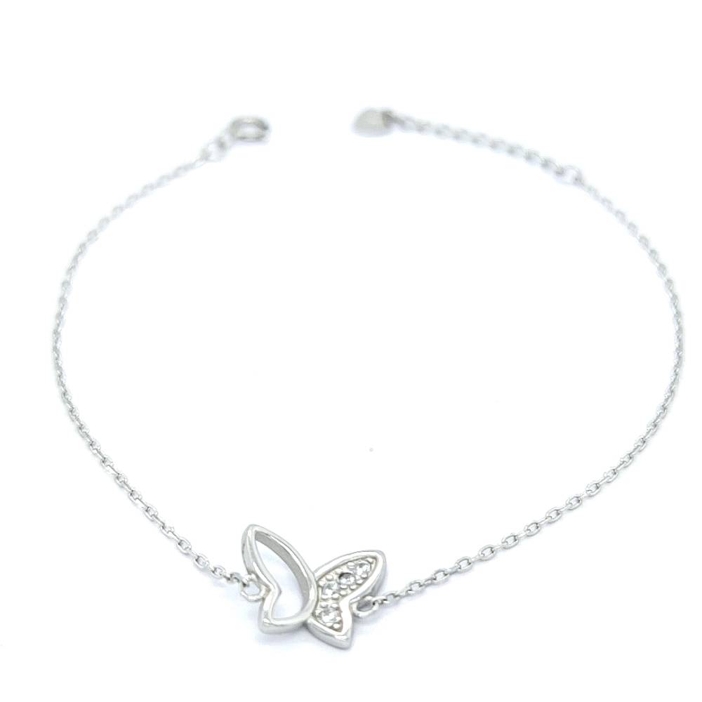 Γυναικείο βραχιόλι φτιαγμένο από ασήμι (925°), το οποίο κοσμείται από μια πεταλούδα με ζιργκόν .