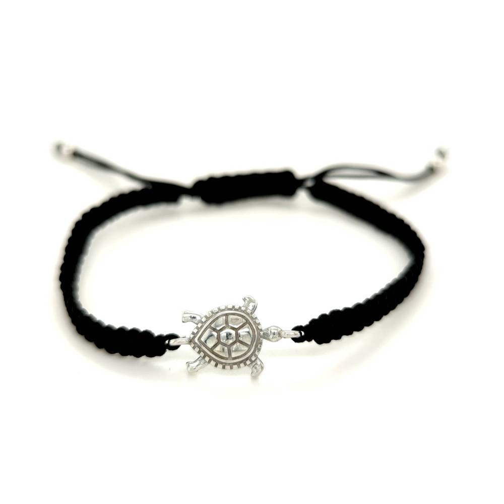 Γυναικείο βραχιόλι μακραμέ με χελώνα από ασήμι (925°).