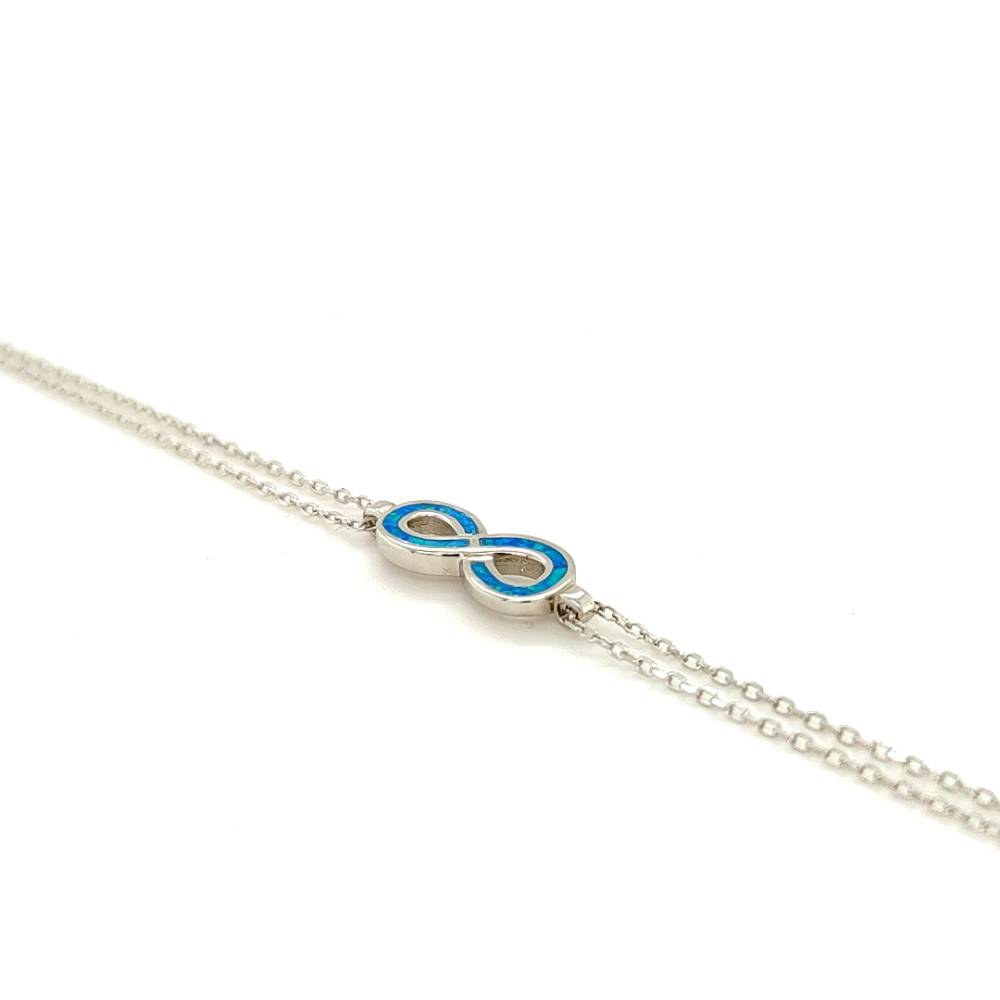 Γυναικείο βραχιόλι με διπλό αλυσιδάκι από ασήμι (925°) με σύμβολο Άπειρο και τεχνητό opal.