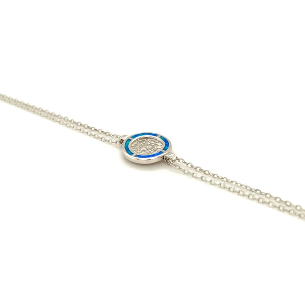 Βραχιόλι με διπλό αλυσιδάκι, ασήμι (925°), Δίσκος της Φαιστού τεχνητό opal