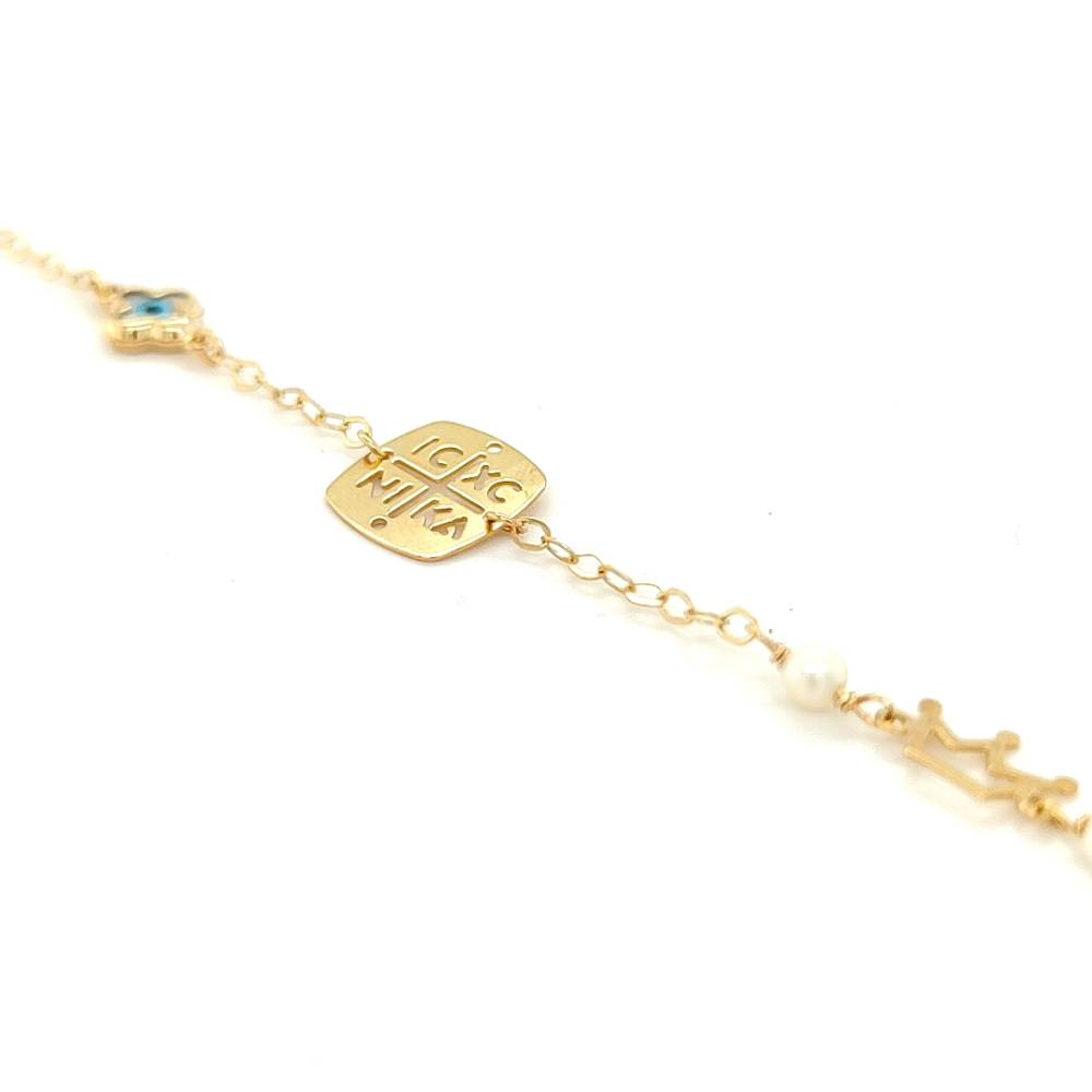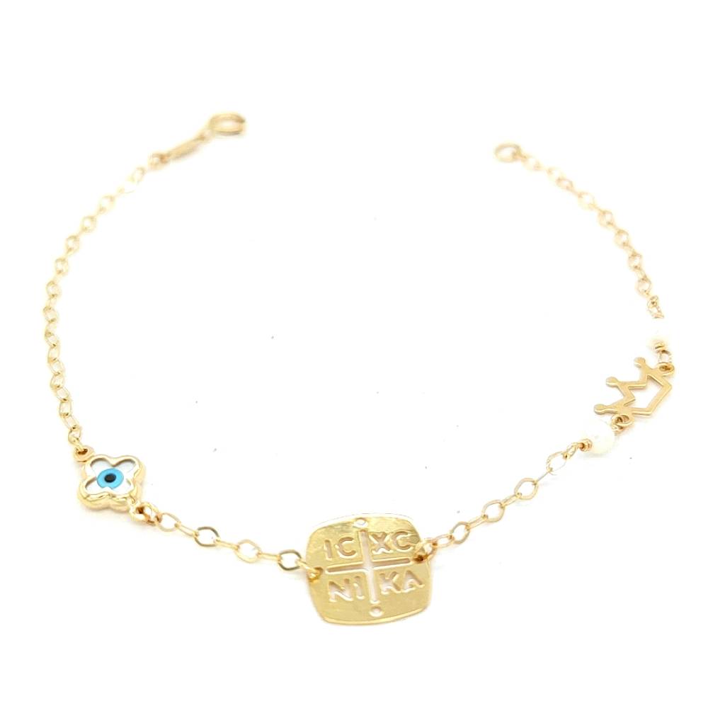 Βραχιόλι με φυλακτό , στέμμα και ματάκι , το οποίο είναι φτιαγμένο από Χρυσό K9 (375°)