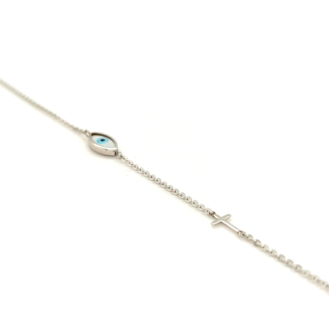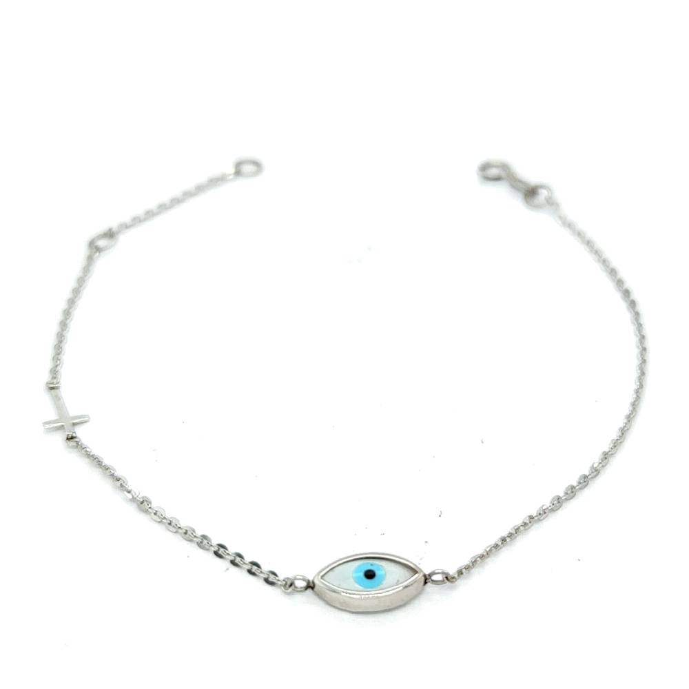 Βραχιόλι με ματάκι και σταυρό, χρυσός Κ14 (585°)