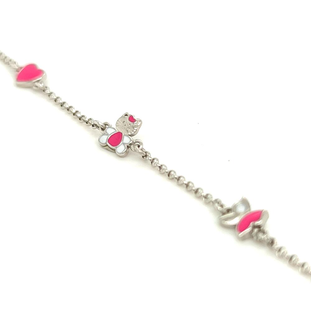 Βραχιόλι παιδικό, ασήμι (925°), καρδιά, γάτα, πεταλούδα