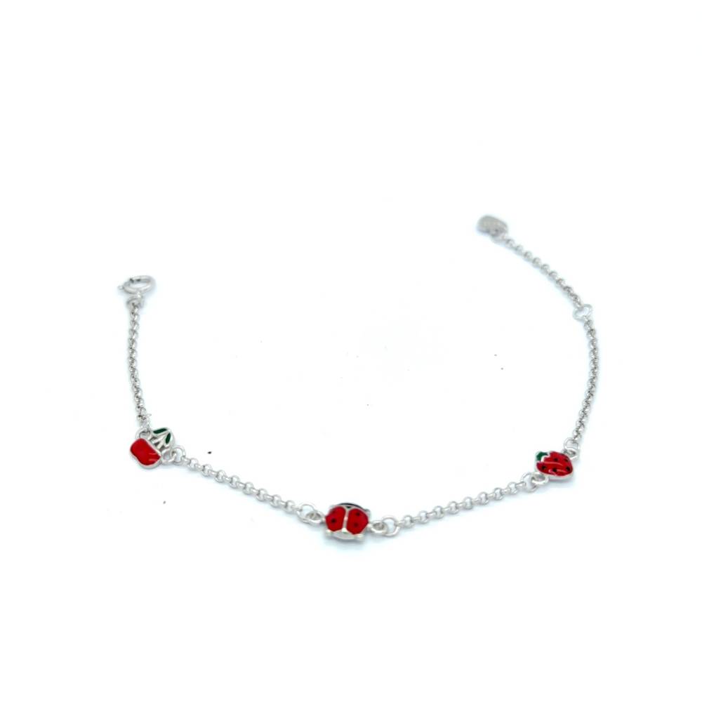 Ένα βραχιόλι παιδικό με κεράσι, πασχαλίτσα και φράουλα φτιαγμένα από ασήμι (925°).