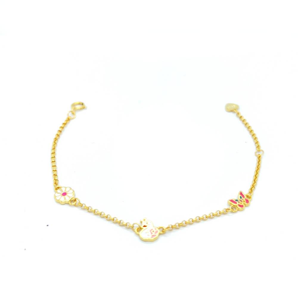 Βραχιόλι παιδικό με κύκνο, λουλούδι και πεταλούδα, επιχρυσωμένο ασήμι (925°)