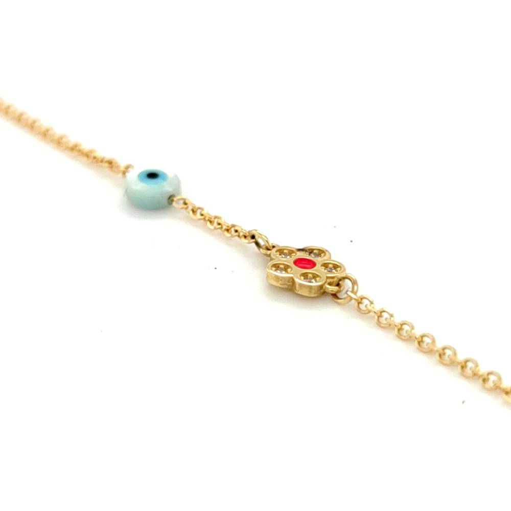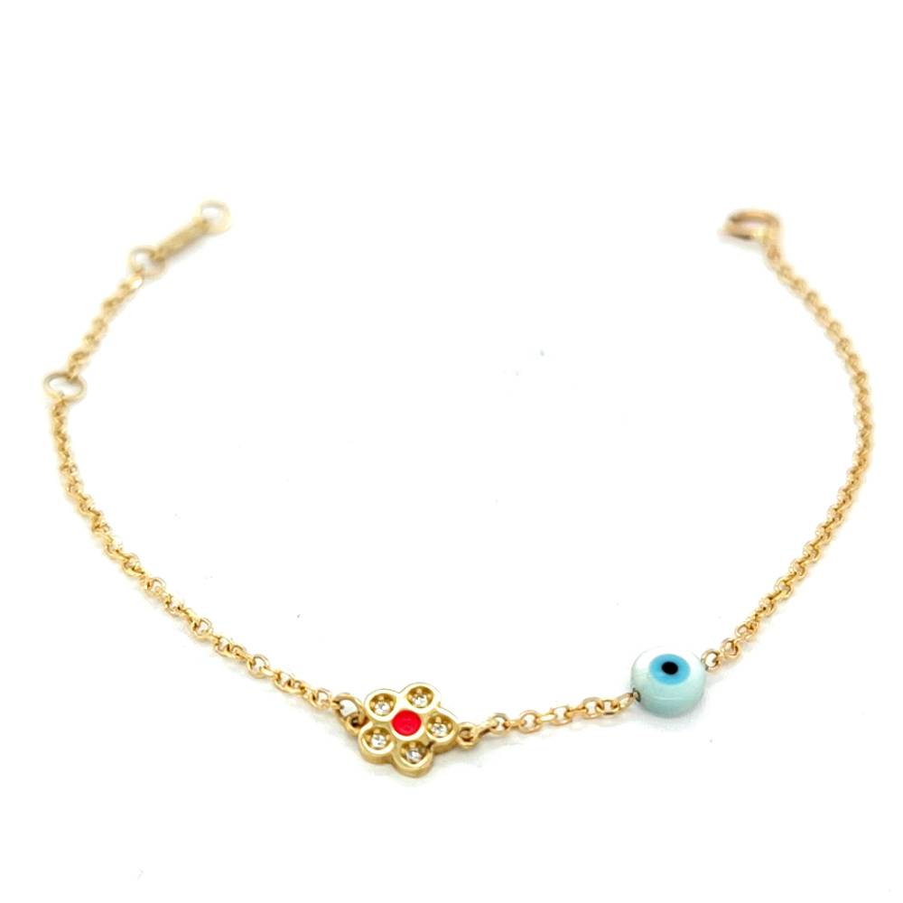 Βραχιόλι παιδικό με ματάκι και λουλούδι , χρυσός K14 (585°)