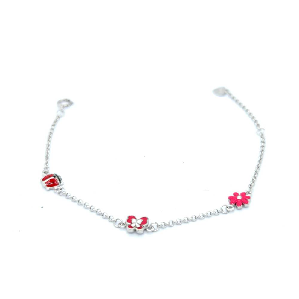 Ένα βραχιόλι παιδικό με πασχαλίτσα, πεταλούδα και λουλούδι από ασήμι (925°).