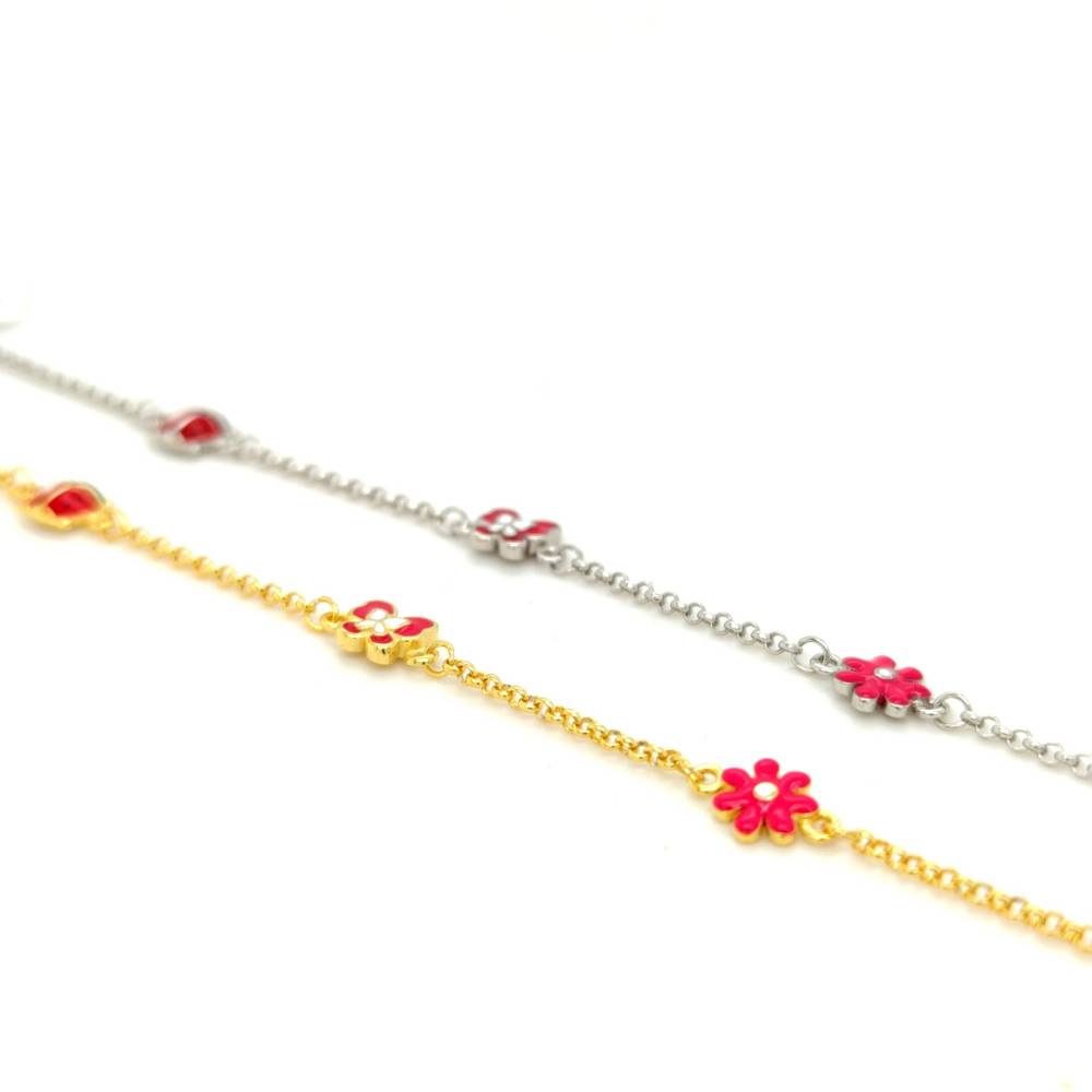 Βραχιόλι παιδικό με πασχαλίτσα, πεταλούδα και λουλούδι, ασήμι (925°)