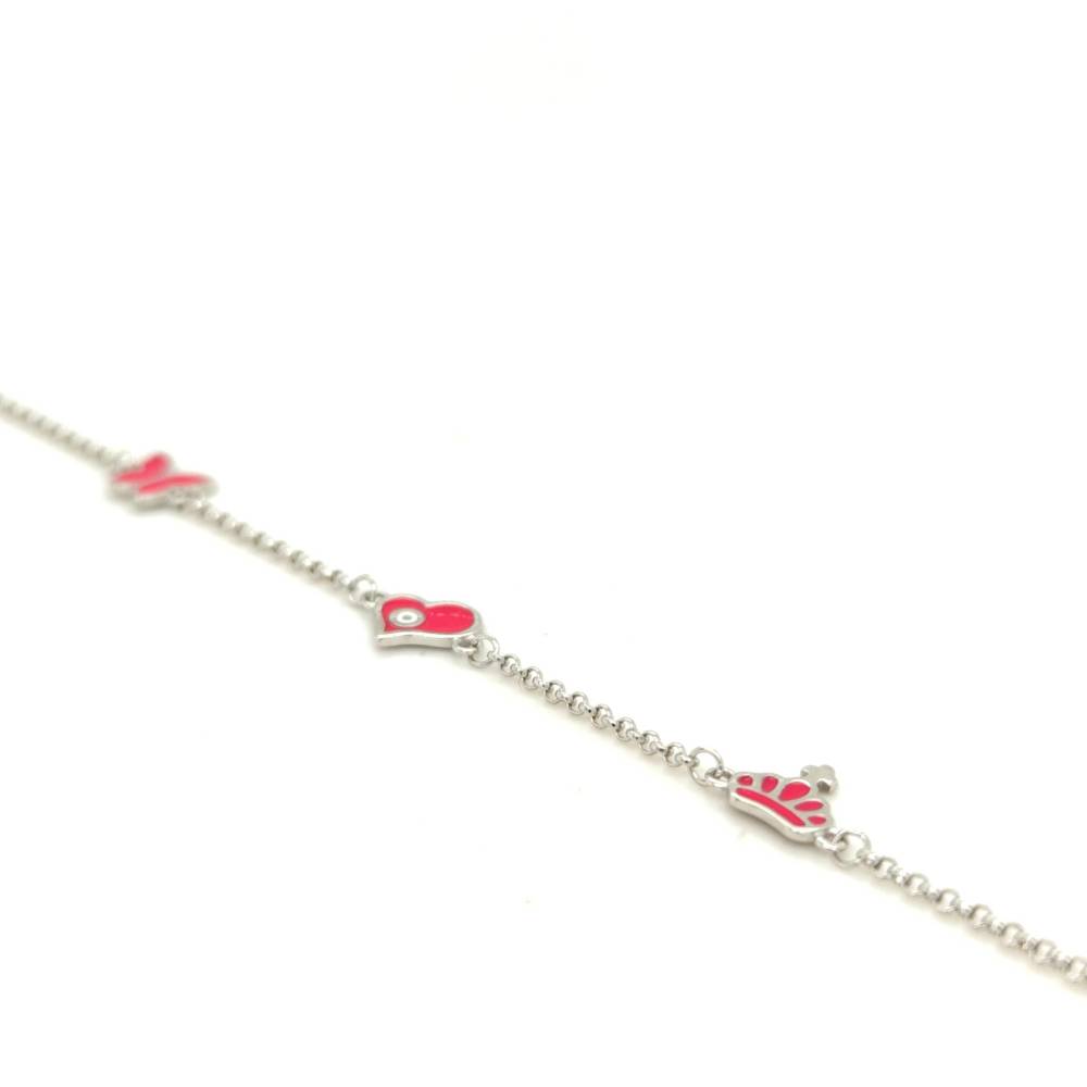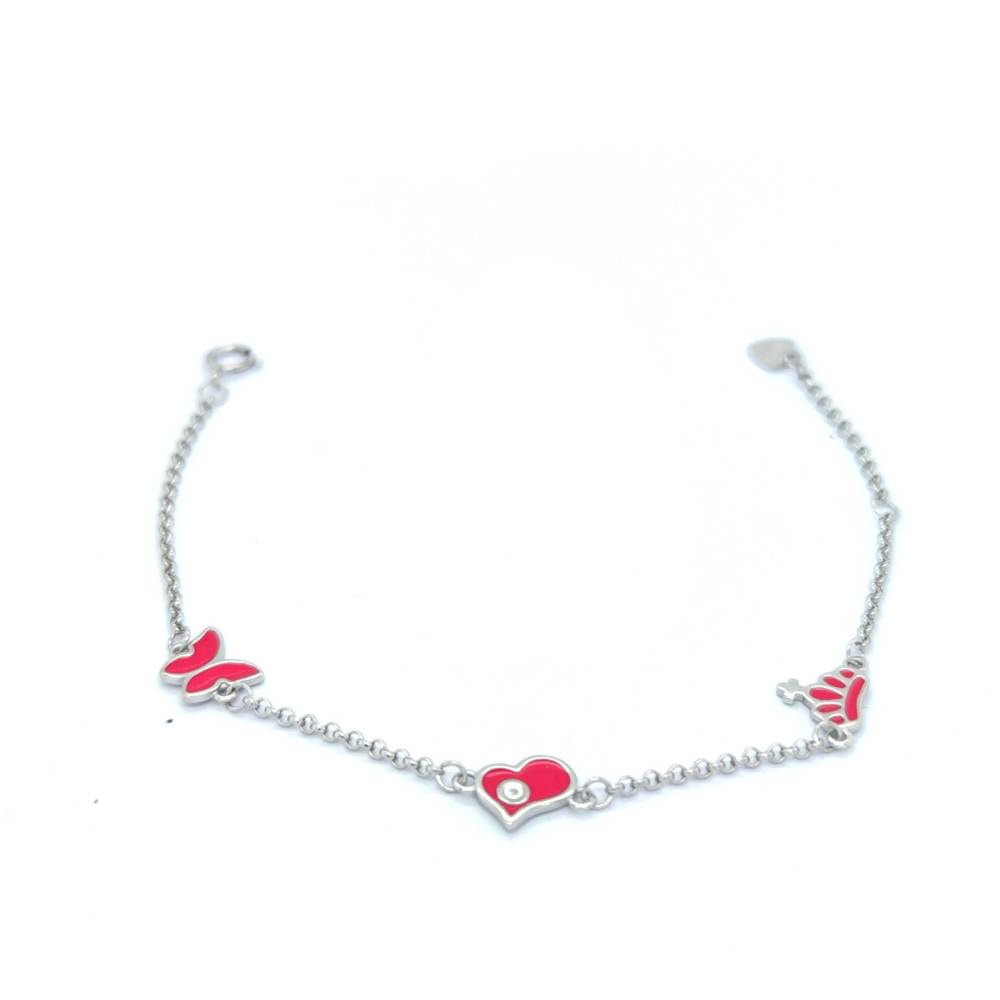 Βραχιόλι παιδικό με πεταλούδα, καρδούλα και κορώνα, ασήμι (925°)