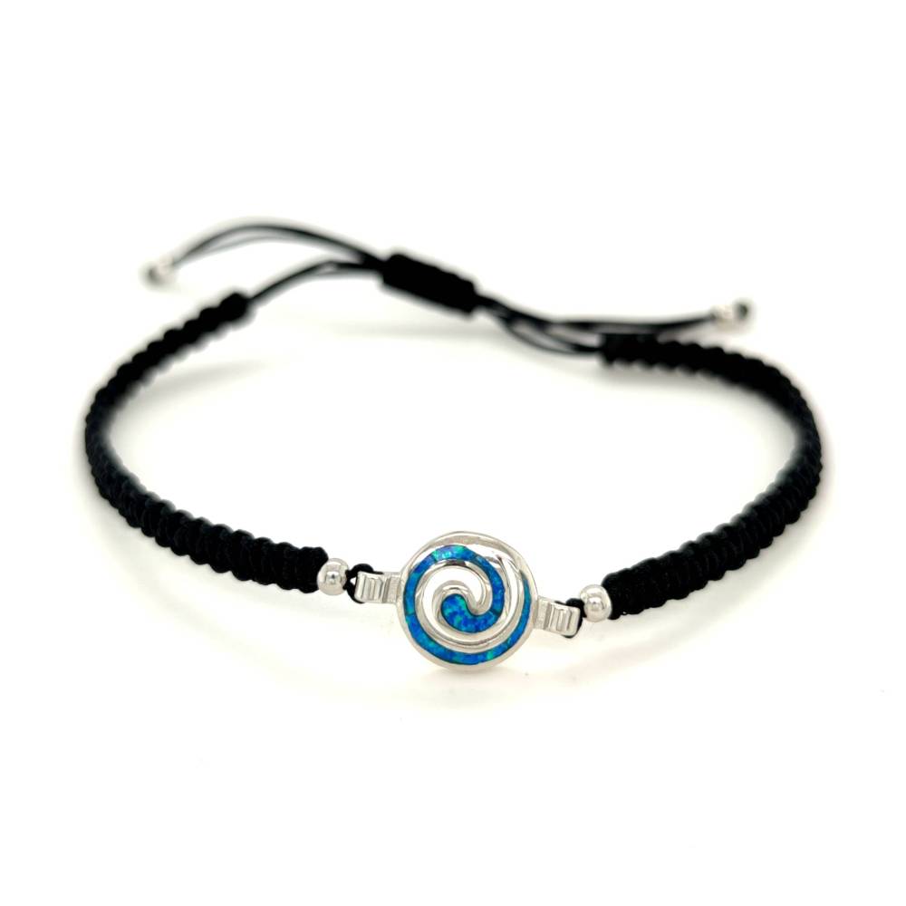 Women’s macrame bracelet made of silver (925 °) with Spiral symbol and artificial opal. The Spiral is an Ancient Greek Symbol of Life and is one of the most ancient symbols and has been used since the Paleolithic era in Greece. One of the most mysterious geometric patterns we find on the planet. It has been found in countless amphorae, statues, jewelry and many other objects.