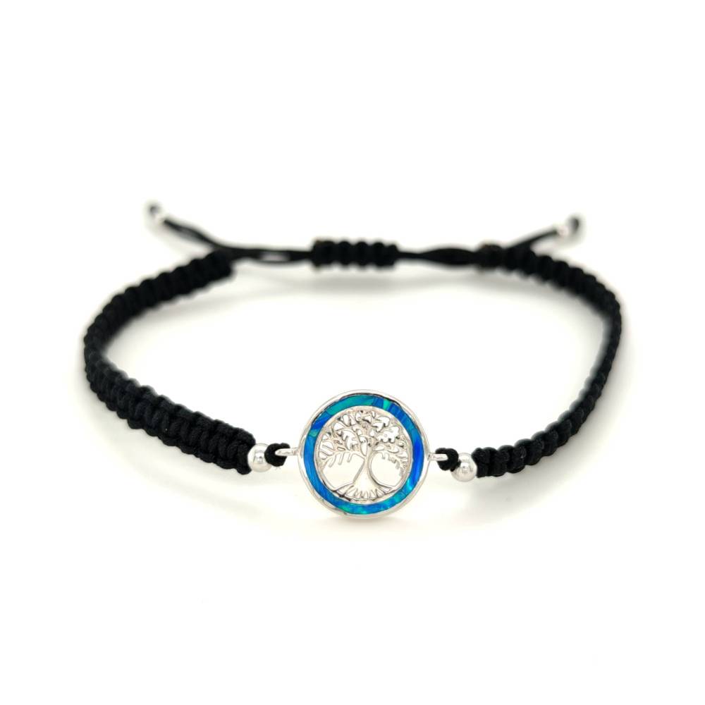 Women’s bracelet silver (925°) macrame, tree of life with artificial opal