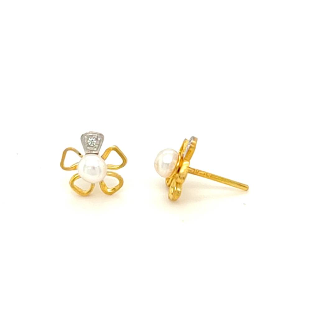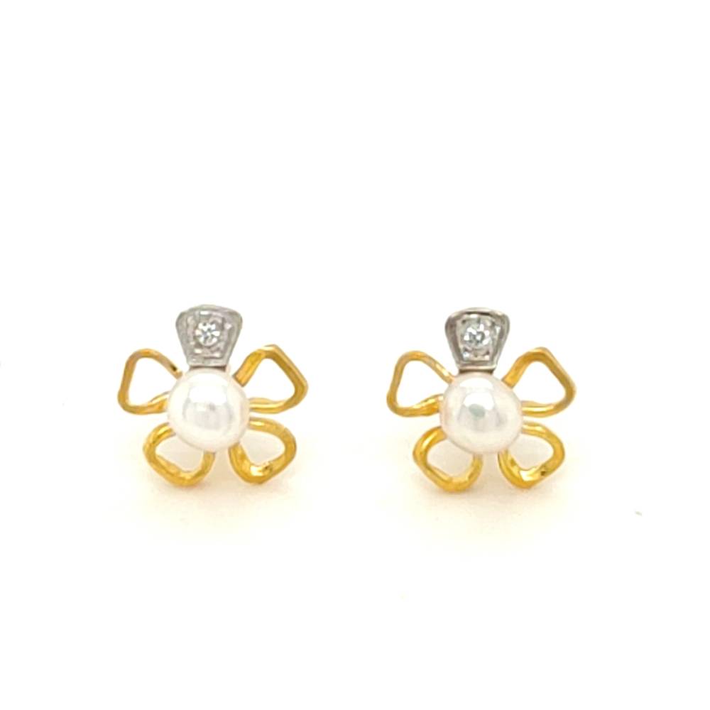 Women’s earrings, gold Κ14 (585°), flower with pearl