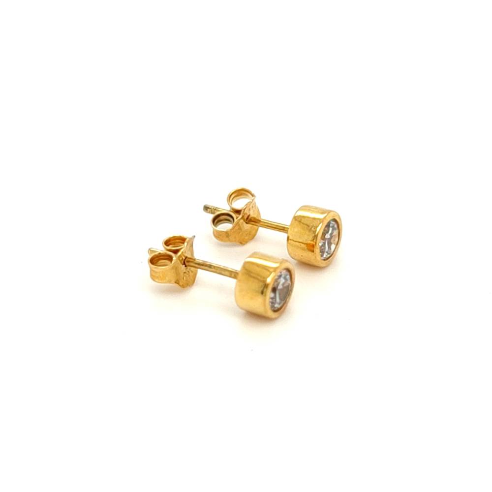 Lovely and elegant stud earrings with round white zircon in K14 yellow gold (585°).