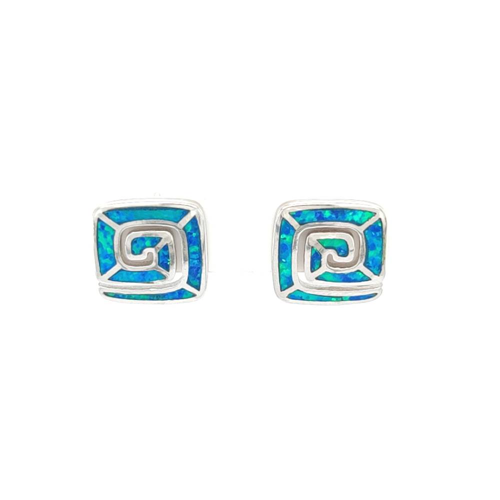Women’s earrings made of silver (925 °) with Meander symbol with artificial opal. Meander is the most ancient Greek symbol, Victory and Unity, a symbol of Infinity and Eternal Life. Inspired, in the opinion of some academics, by the numerous turns of the river Meander. Meander is used in pottery, temples, monuments, sculptures, objects, weapons, armor and jewelry.