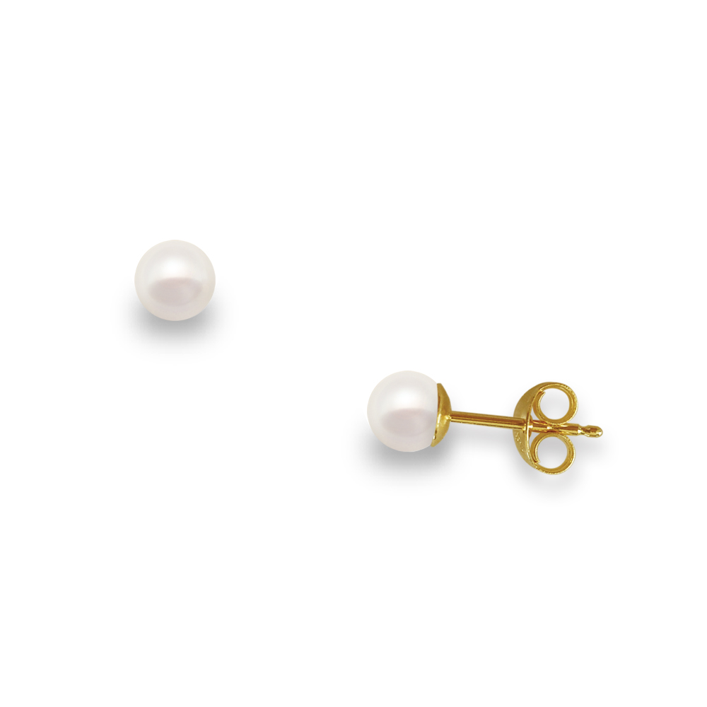 Women’s earrings with white pearls on a gold base K14 (585°), 5.0 – 5.5 mm