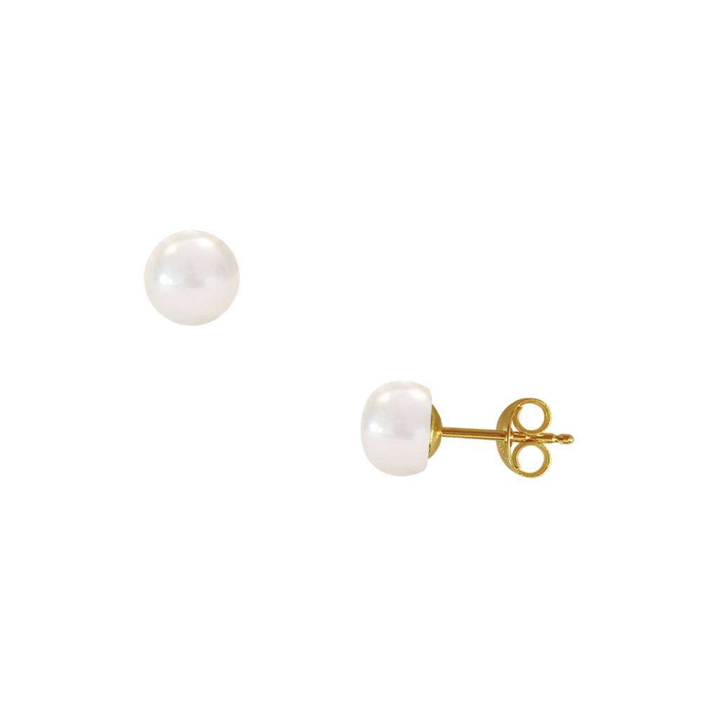 A wonderful pair of earrings with white Pearls Fresh Water Pearl, of excellent quality in button shape, with a diameter of 6,5 – 7,0 mm. It has K14 (585°) gold bases and K14 (585°) gold safety clasps (butterflies). Pearl earrings are the only timeless jewels that exist from antiquity until today.