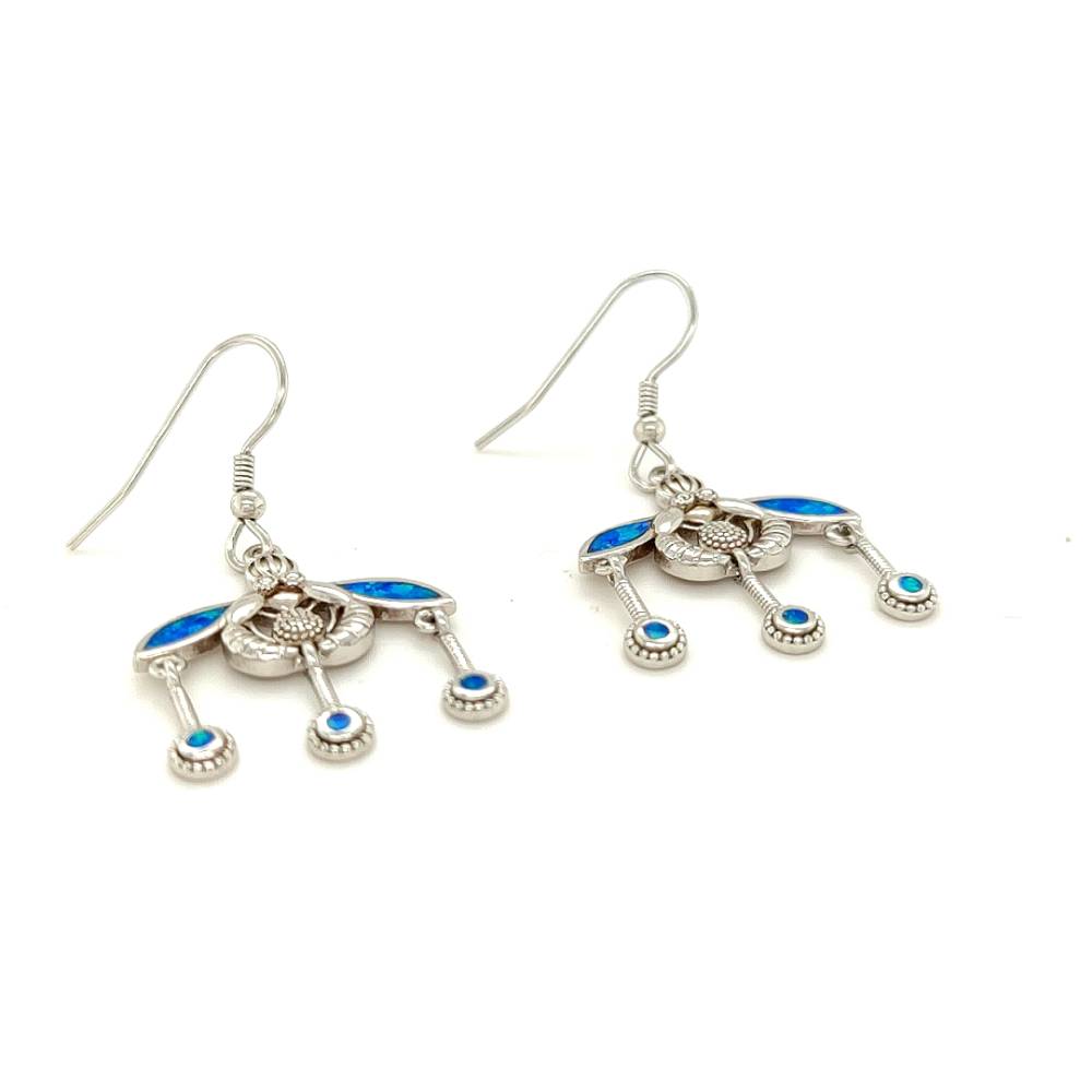 Women’s hanging earrings, silver (925°), with the Minoan Bee and artificial opal. One of the greatest and best-known works of Minoan art is the famous periapto in the shape of two bees dating from 1800 – 1700 BC.