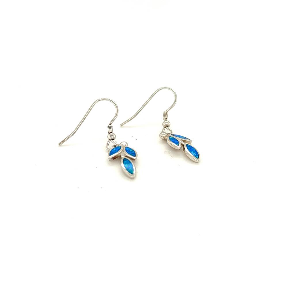 Women’s hanging earrings, silver (925°), Olive Tree leaves with artificial opal
