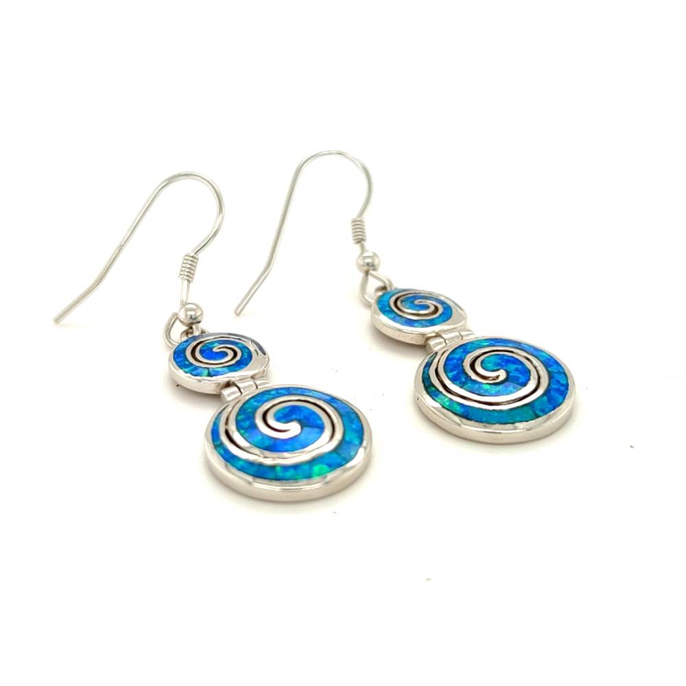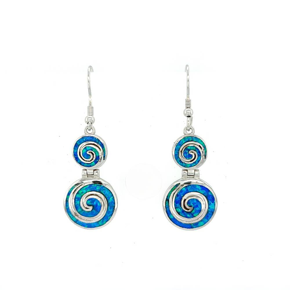 Women’s earrings made of silver (925 °) with Spiral symbol and artificial opal.The Spiral is an Ancient Greek Symbol of Life and is one of the most ancient symbols and has been used since the Paleolithic era in Greece. One of the most mysterious geometric patterns we find on the planet. It has been found in countless amphorae, statues, jewelry and many other objects.